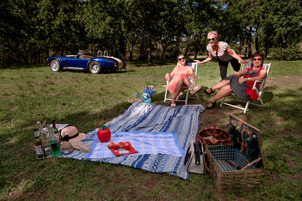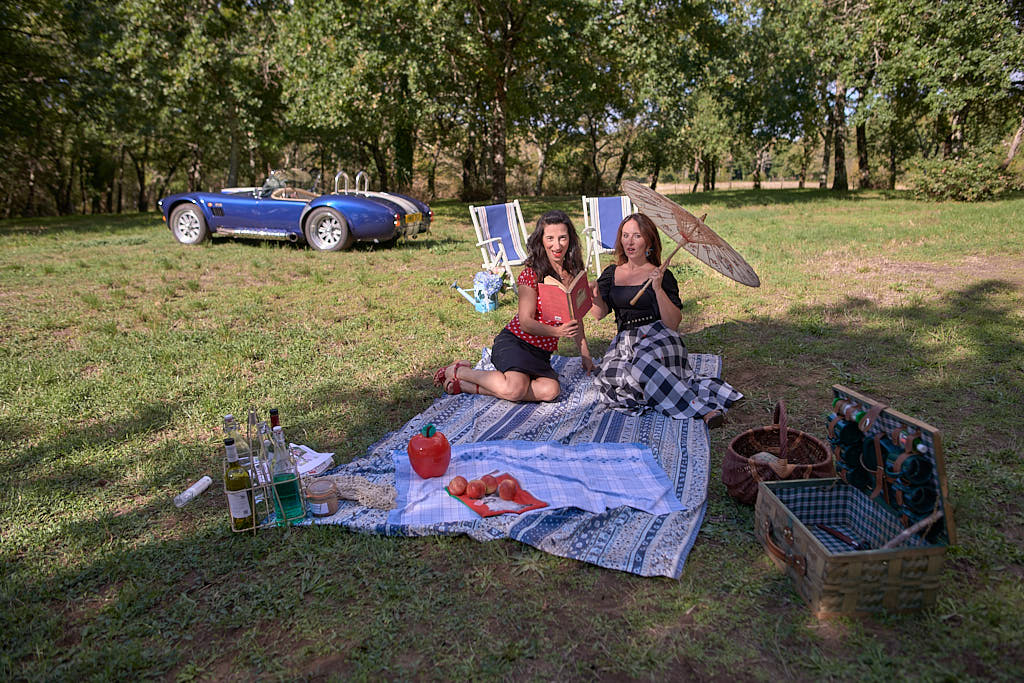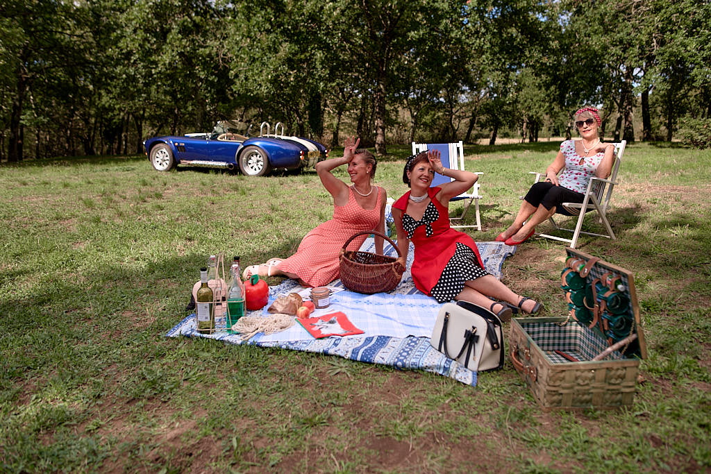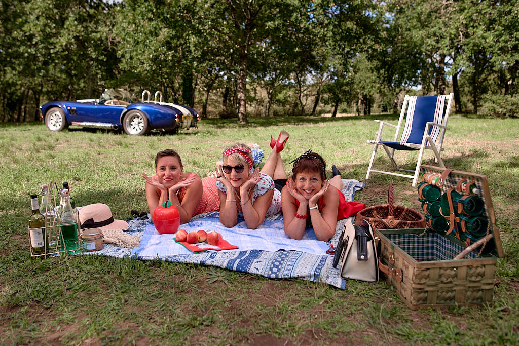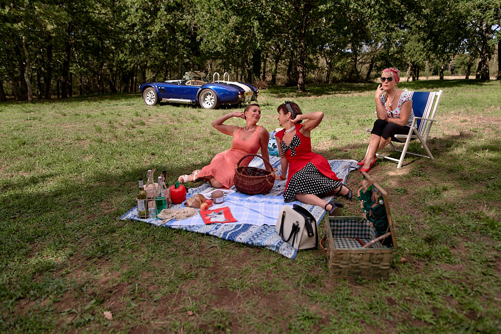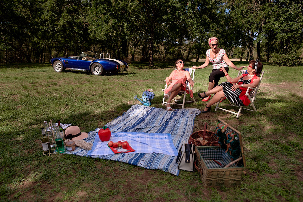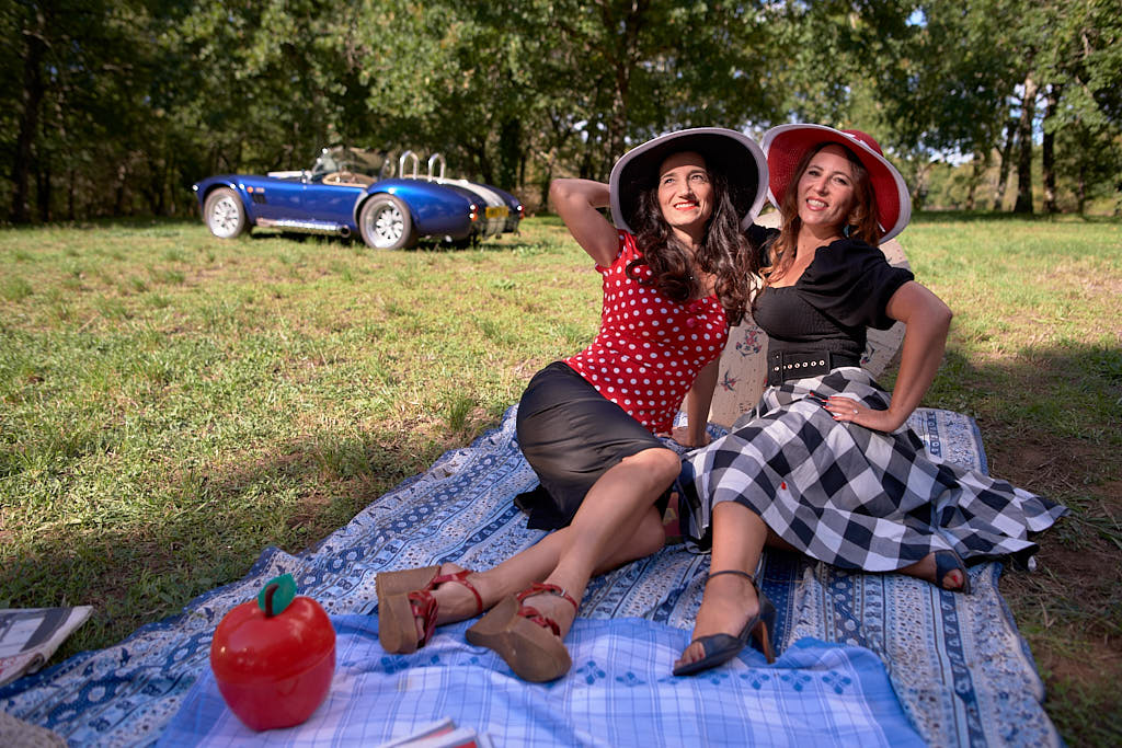 Des pinups en promenade dans une voiture de rêve, un Pick Nic dans l’herbe.