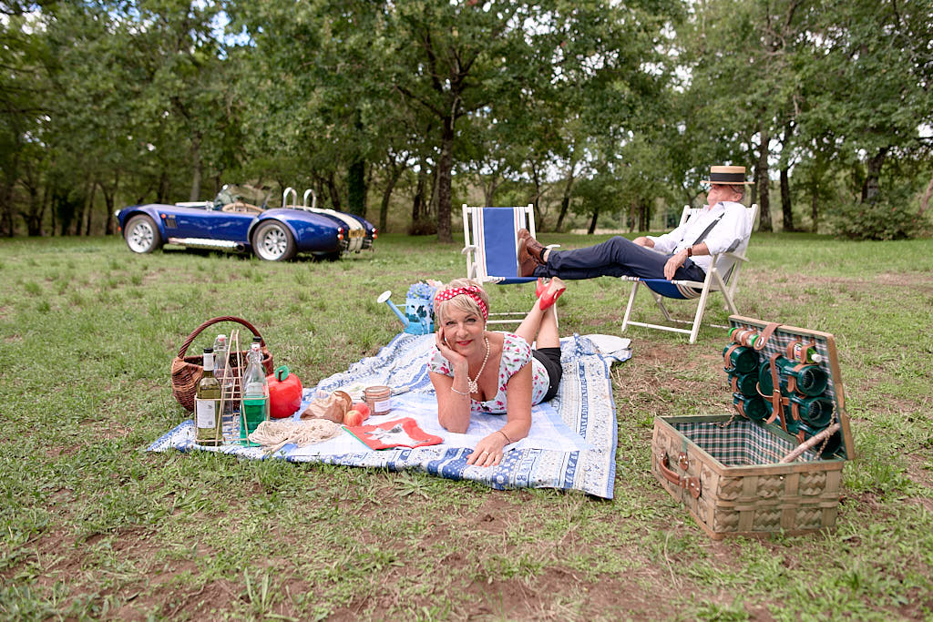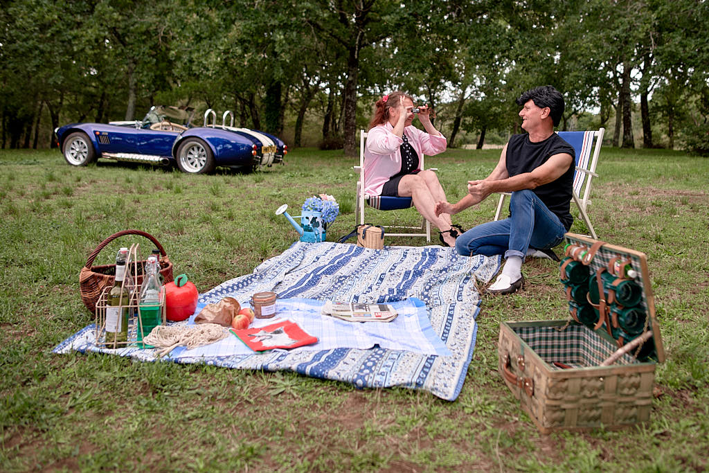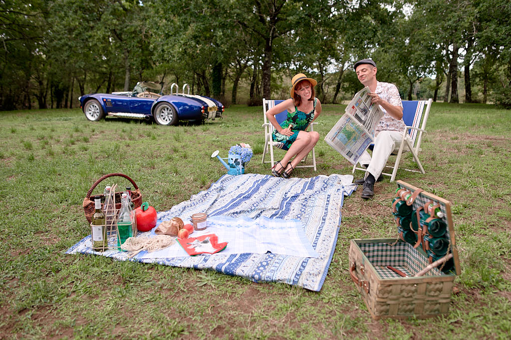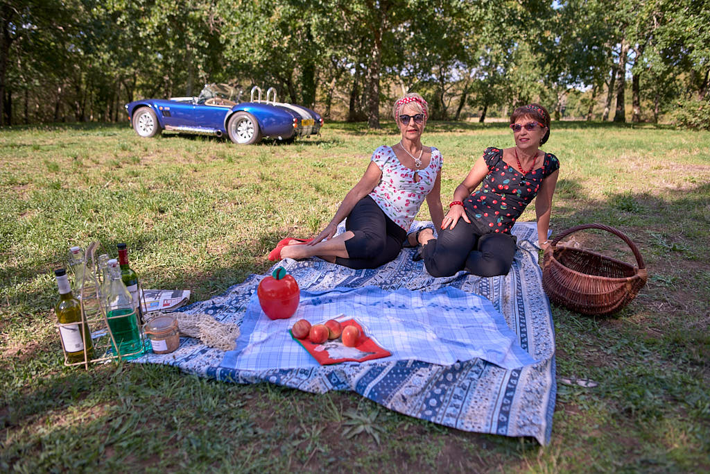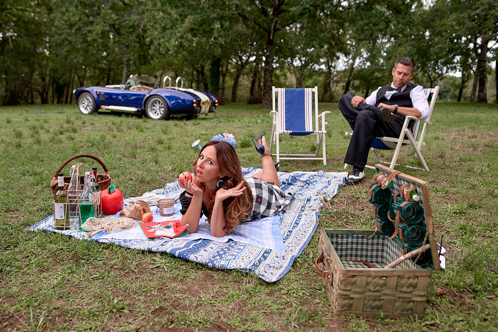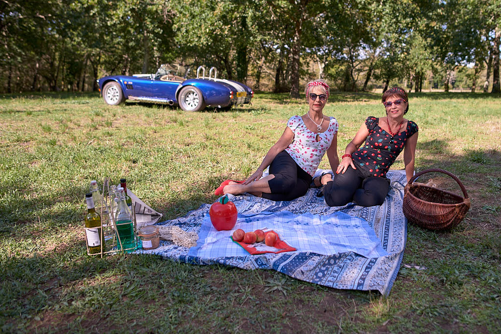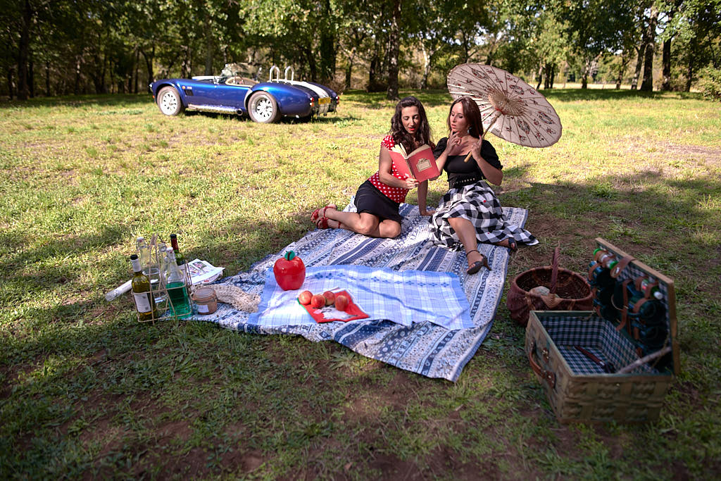 Des pinups en promenade dans une voiture de rêve, un Pick Nic dans l’herbe.
