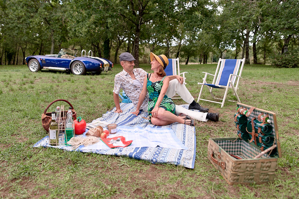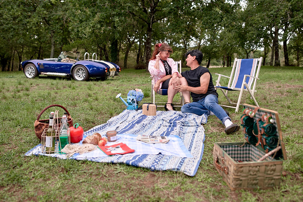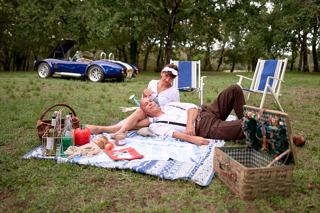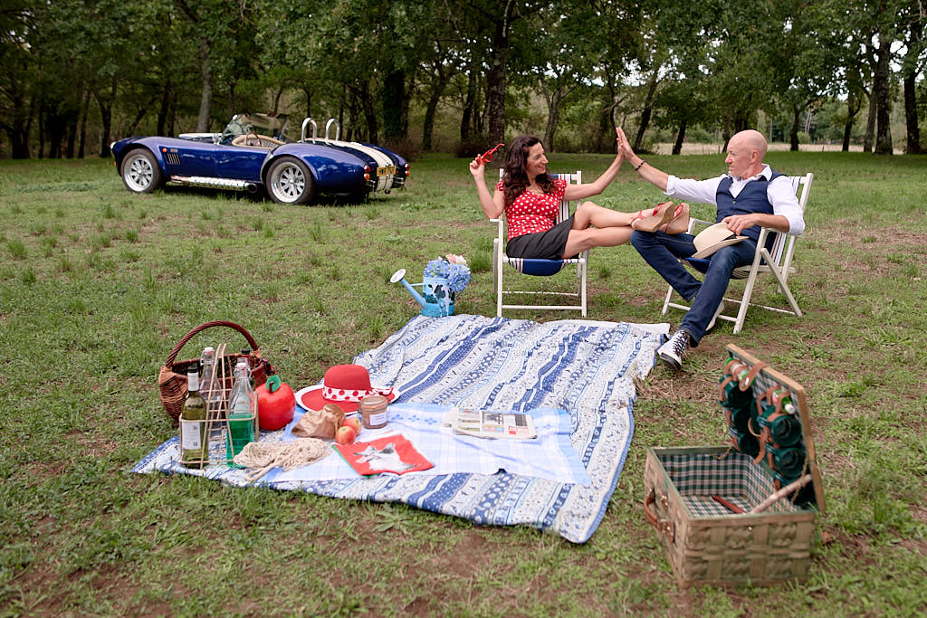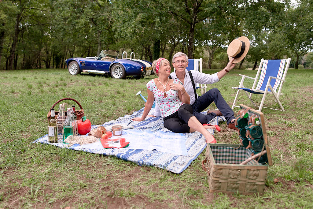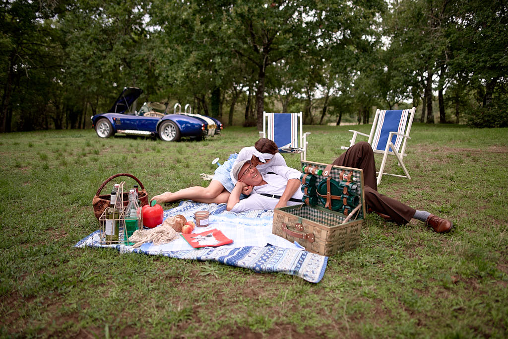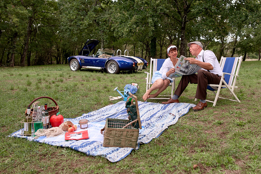 Des pinups en promenade dans une voiture de rêve, un Pick Nic dans l’herbe.