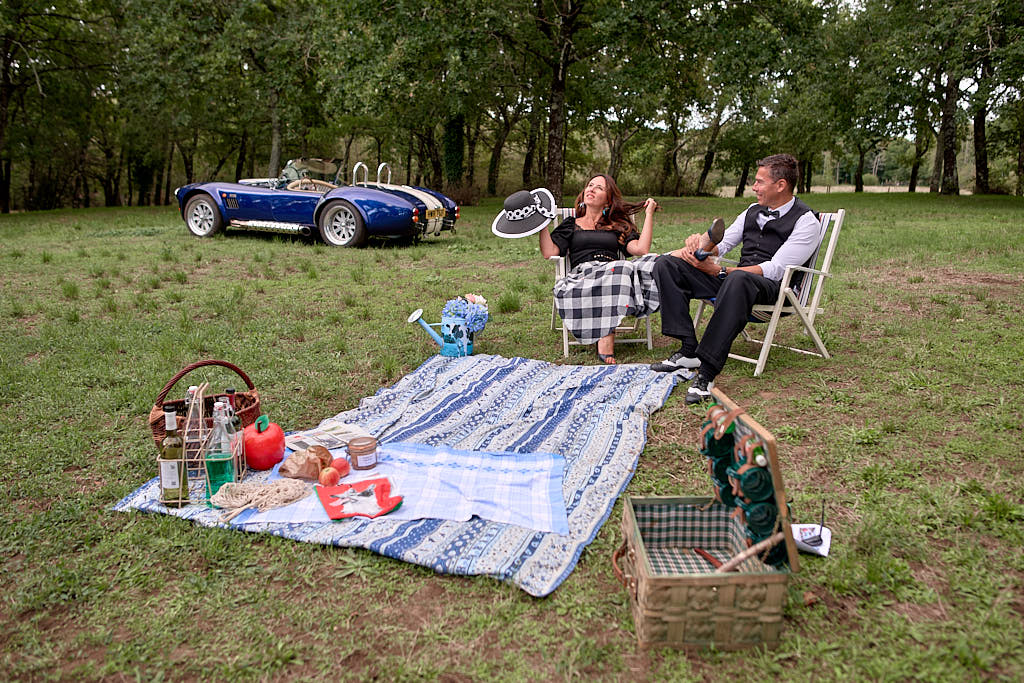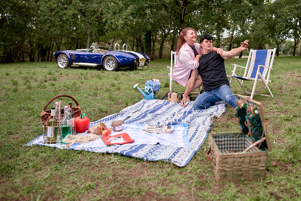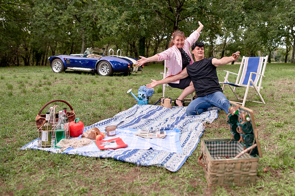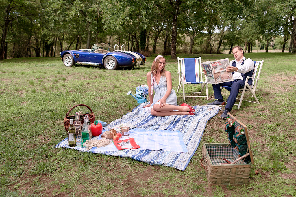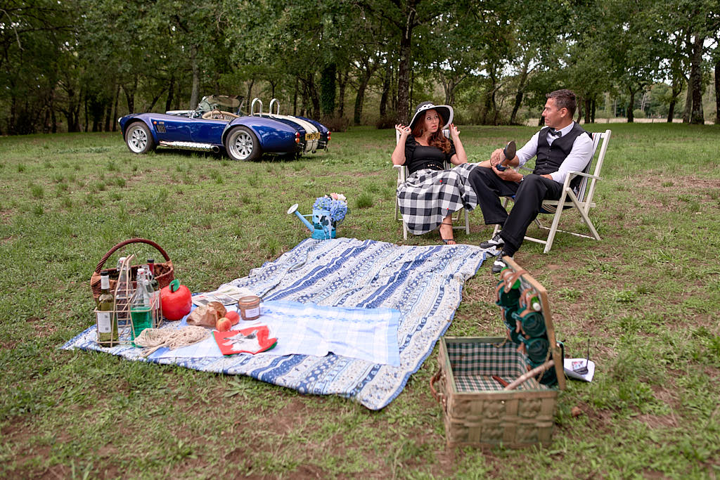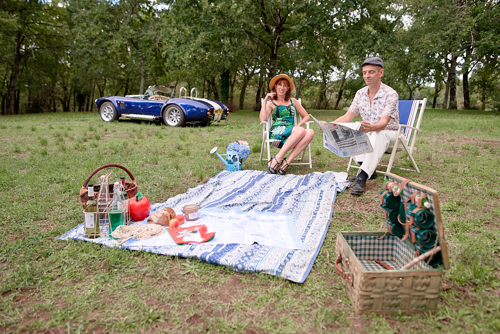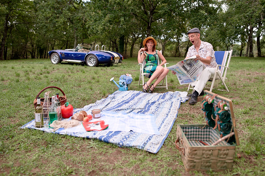 Des pinups en promenade dans une voiture de rêve, un Pick Nic dans l’herbe.